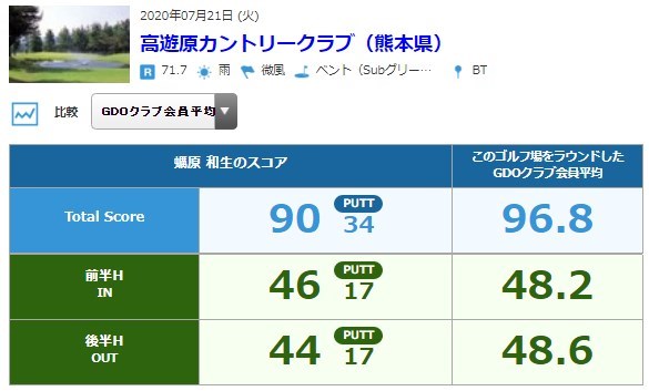 うーん。やはり白ティーからなら80台前半で回りたい。んで青ティーからなら85前後で回れるようになりたい。倍返し出来るように練習しなければ。